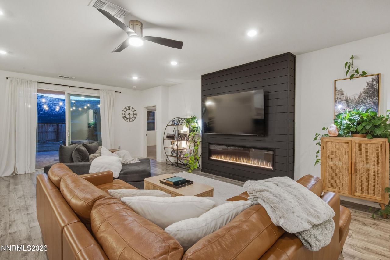 Experience mountain-view living in this beautifully upgraded 4-bedroom, 3-bath home offering 2,536 sq ft of thoughtfully designed space. This home blends modern finishes with unique custom features that make it truly one-of-a-kind. The open-concept layout is perfect for both everyday living and entertaining, showcasing stylish modern upgrades throughout. Kitchen features oversized island with breakfast bar, spacious walk-in pantry, and 5-burner gas cooktop. A standout feature is the custom-built children's bunk room complete with a climbing wall and slide, creating a fun and imaginative space. The true highlight is the expansive backyard and breathtaking mountain views. Step outside to enjoy the backyard designed for relaxation and entertaining with the patio offering both covered and uncovered spaces. No other houses or structures obscure the view giving you privacy and peace. The outdoor space features a hot tub, fireplace, and plenty of room to enjoy the surrounding natural beauty. Ideally located near the Truckee River, this property offers convenient access to outdoor recreation including hiking, biking, and water activities. Within minutes, you can walk to the Truckee River and enjoy swimming or fishing. Enjoy the perfect balance of mountain lifestyle and accessibility, located approximately 25 minutes from Truckee and 18 minutes from Reno-Tahoe International Airport. This home offers comfort, character, and an exceptional location ready to be enjoyed.